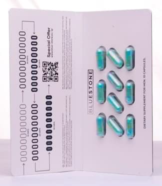 A Bluestone komplexum olyan vitaminokat, ásványi anyagokat és hasznos nyomelemeket tartalmaz, amelyek minden 30 feletti férfi számára szükségesek. A természetes növényi kivonatok és aminosavak segítenek a szexuális élet javításában és az egész szervezetre gyógyítóan hatnak. A kapszulák hozzájárulnak a stressz feldolgozásához. Ezzel az agyműködés is javul, valamint a termék segít felvenni a harcot a szorongás és a depresszió tüneteivel. A muira puama javítja a memóriát, az állóképességet és az anyagcserét, ami a testsúly kordában tartását is segíti. A likopin megvédi a prosztatamirigyet a sérüléstől és megszabadít a gyulladástól.